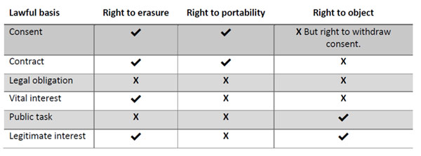 The table below shows which right you can rely on, depending on the legal basis applicable to the specified processing of your personal data: